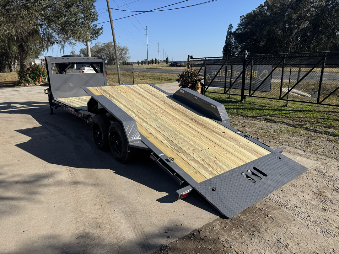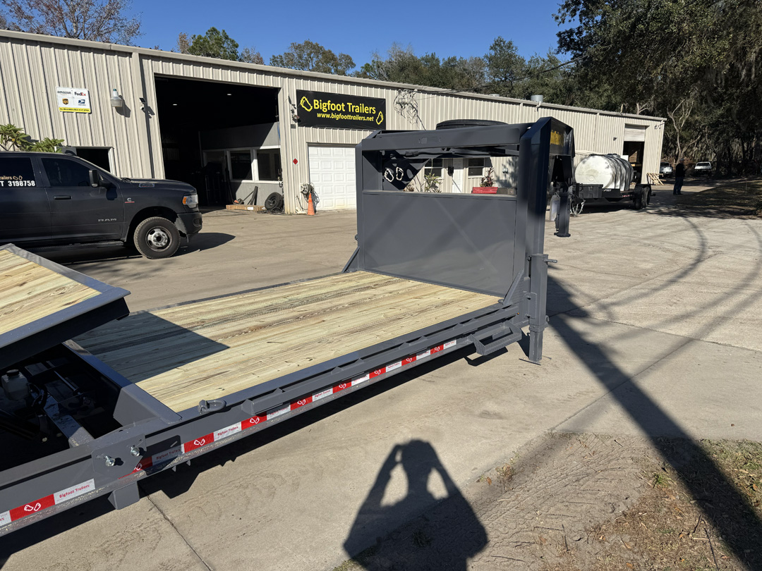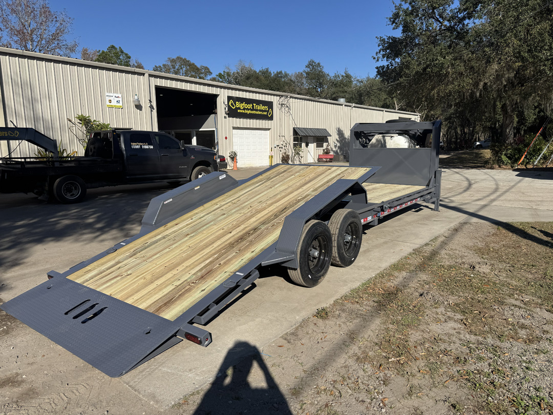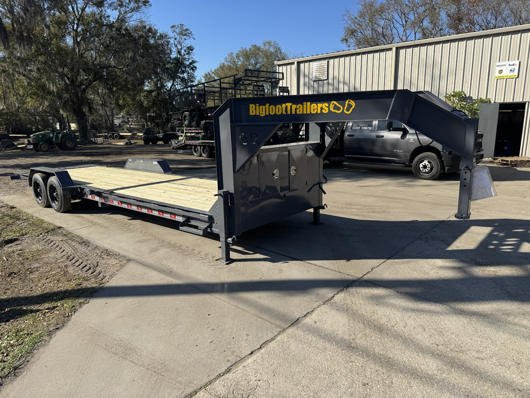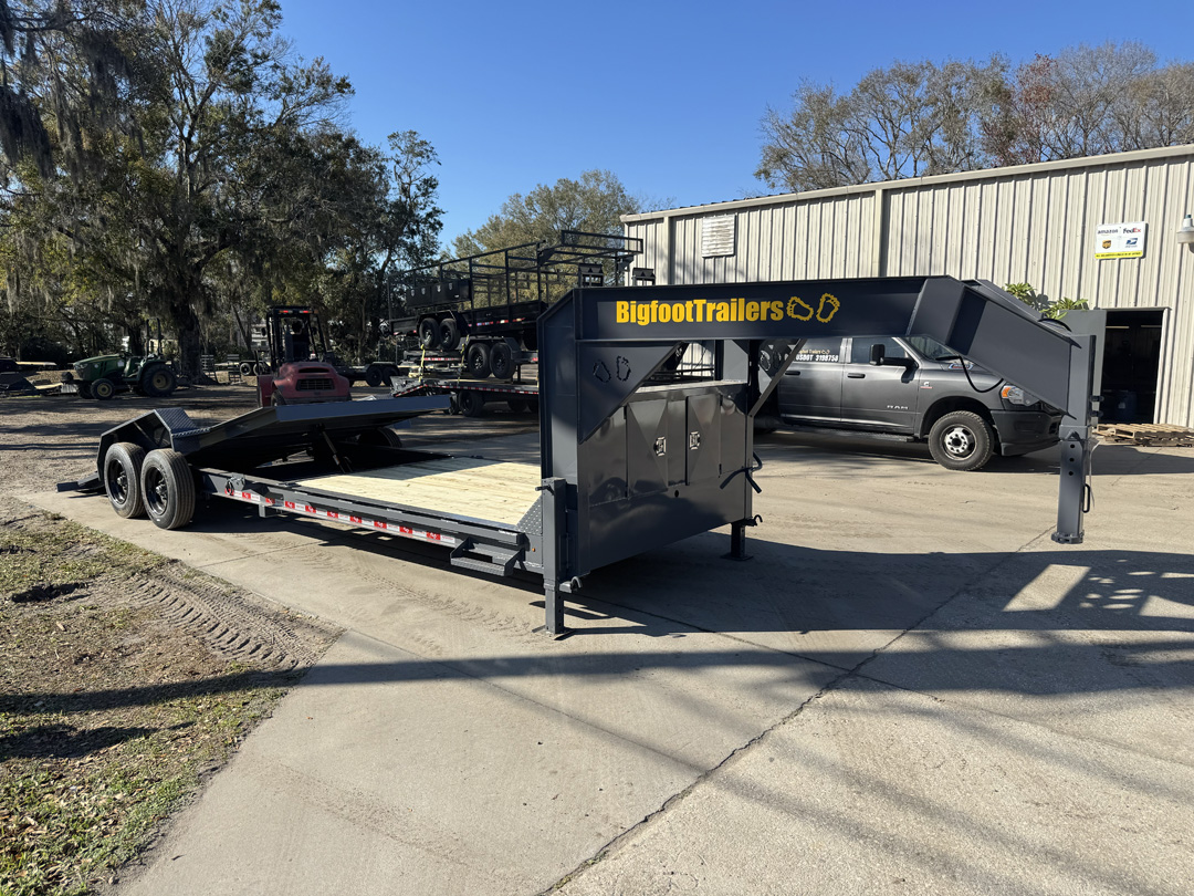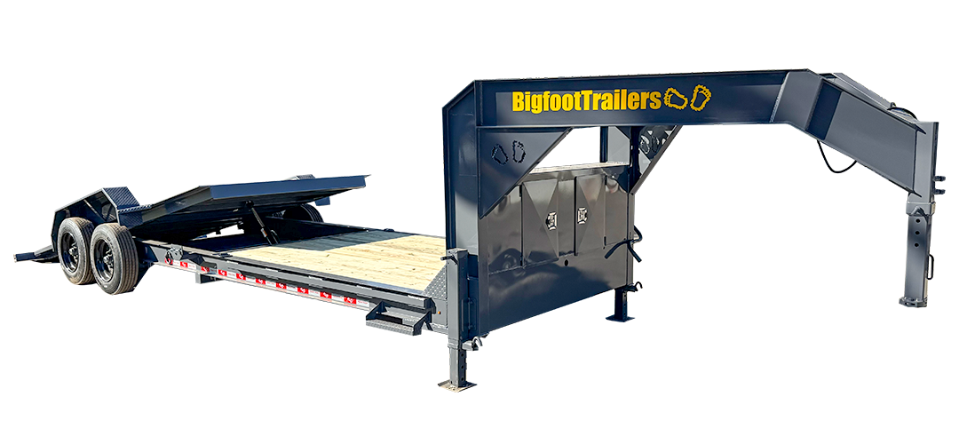 Need a serious gooseneck built to handle real equipment without jumping into a full heavy-duty platform? The Bigfoot Yeti Gooseneck Trailer is built for contractors, landowners, and operators who want strength, stability, and flexibility in one package. Available in 15,000 lb, 18,000 lb, and 21,000 lb GVWR options with your choice of flip-up ramps or a full hydraulic tilt deck, the Yeti Gooseneck is designed to match the way you load and work. Built on a heavy fabricated I-beam frame with 3” channel crossmembers on 16” centers, it provides a solid, stable platform for equipment, vehicles, and materials. The 15K and 18K models run 7K or 8K axles, while the 21K steps into heavier running gear for increased capacity. Dexter Torflex axles deliver smoother travel and reduced maintenance, paired with premium self-adjusting electric brakes for reliable stopping power. A 2-5/16” adjustable gooseneck coupler, dual 12K jacks, and heavy safety chains ensure secure towing. Ramp models include 18” wide flip-ups, while the tilt option offers a faster, cleaner loading angle for low-clearance equipment. Finished in the Bigfoot Evercoat paint system and topped with Yellawood pressure-treated decking, the Yeti Gooseneck is built to take job site abuse and keep working.